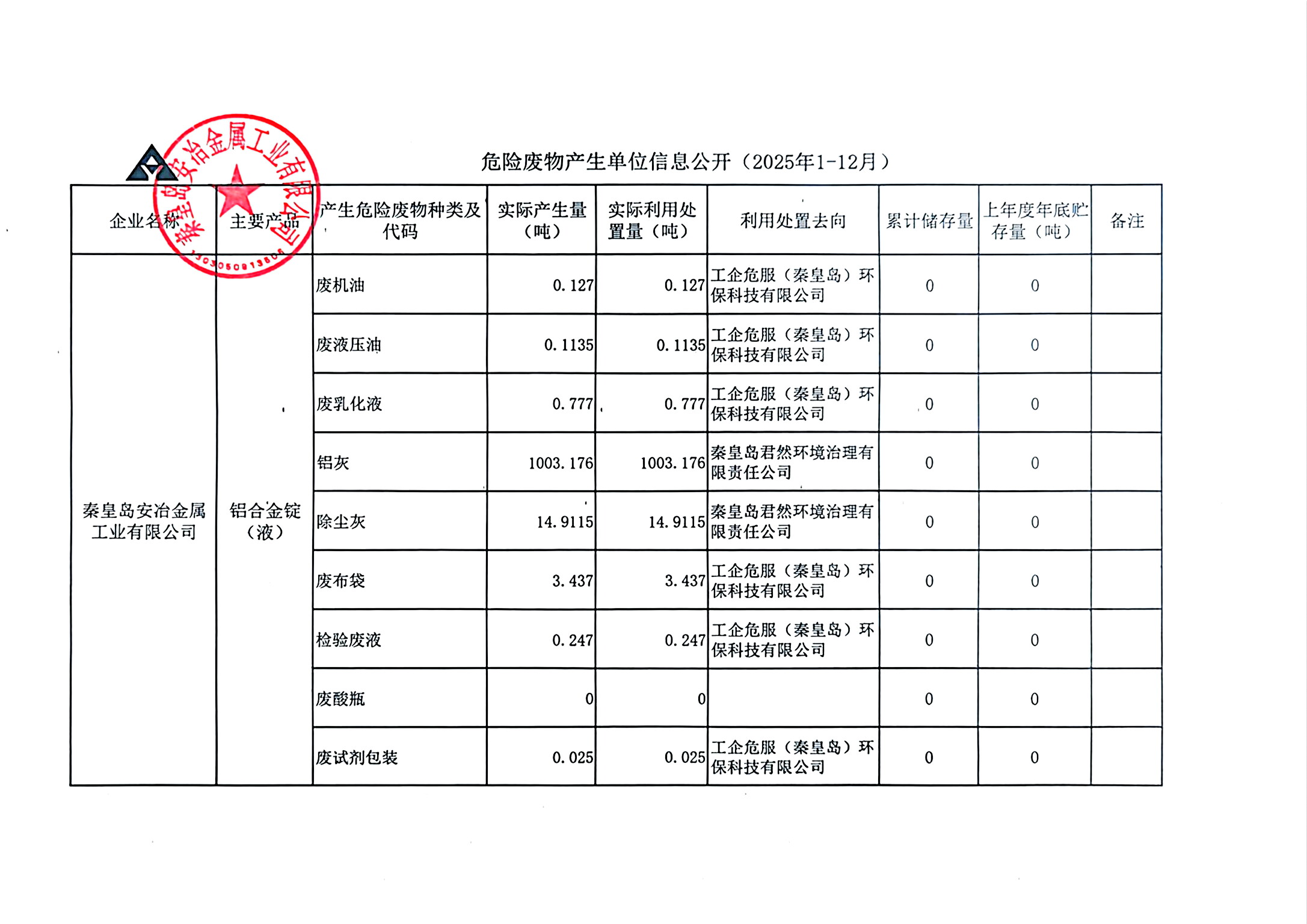 危險廢物產生單位信息公開(202年1-12月)